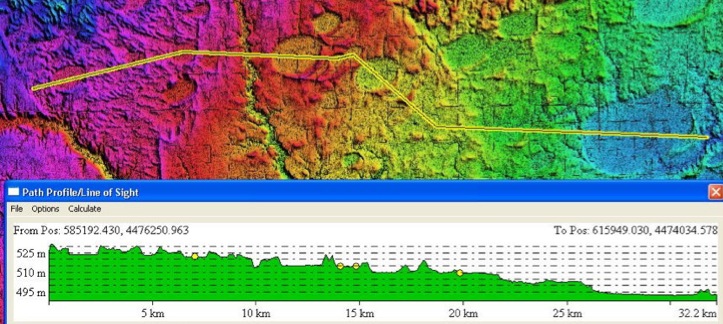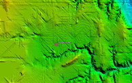 Our use of elevation data includes the generation of "elevation profiles", which attempt to relate the disparate altitudes of bays in a region. We interpret this to be an effect of the "blanket" draping over previous landscapes. Here is an example of the Genera, NE region. Bay floor elevations range from 535 MASL to 495 MASL over a distance of 32 miles. As is the case in the east, the deposition of basins is seen on a continuum without regard to elevation. This correlates with our blanket hypothesis, as the ejecta layer is spread across existing terrain.