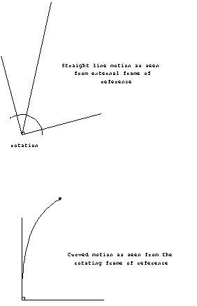 Projectiles which travel great distances are subject to the Coriolis force. This is a artifact of the earth's rotation. The local frame of reference (north, east, south and west) must rotate as the earth does. The amount of rotation, also known as the earth rate is dependent on the latitude: earth rate = (2p radians)/(24 hours) sin(latitude). For example, at 30o N, the earth rate is 0.13 radians/hr (3.6 x 10-5 rad/sec). As the frame of reference moves under the projectile which is traveling in a straight line, it appears to be deflected in a direction opposite to the rotation of the frame of reference.