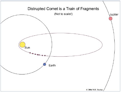 Such an event would necessarily require that at least some of those cometary elements would have remained in the inner solar system to this day, and would therefore be available for inspection. Does such a collection of earth-crossing cometary fragments exist? Yes, the Taurid Complex.