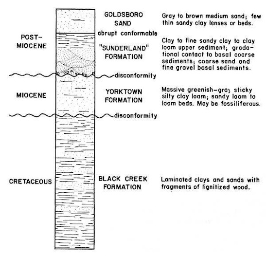 Stratigraphy in the vicinity of the Goldsboro Ridge. - Daniels, Gamble, Wheeler