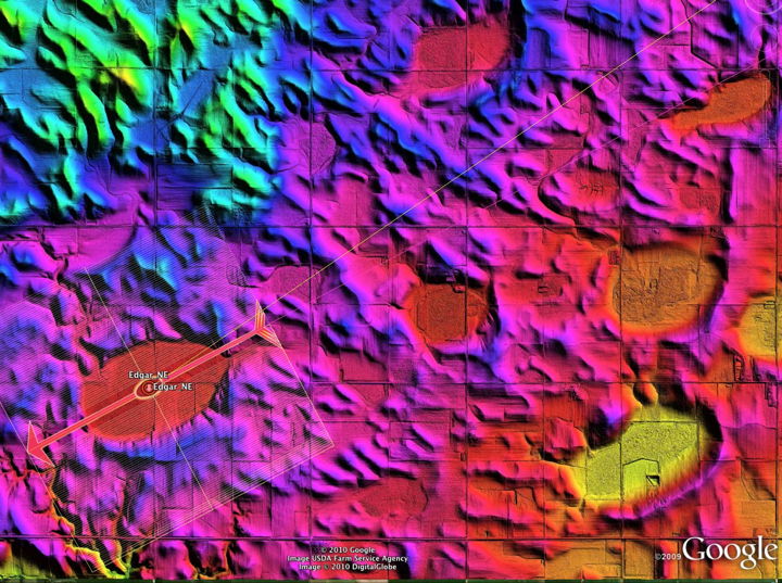 The Google Earth Embedded Viewer below offers a visualization of the situation, using a color-ramp image created with Nebraska DNR LiDAR data.