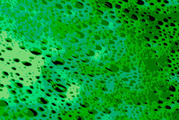 An experiment to re-create this effect directly has not yet been attempted. We believe a slurry above 100ºC would be required . Alternatively, a slurry using sand and frozen carbon dioxide may be a useful test. Failing those routes, we have taken simple photographs of large sheets of soap foam floating on water. By stretching the photographs to generate ovals, we have produced graphics which closely simulate the pay planforms and size distributions seen on the earth. These were colorized to simulate landscape.