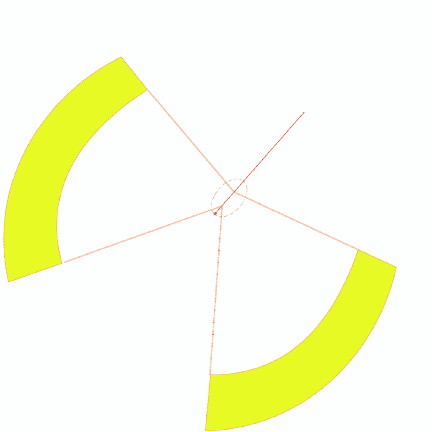 In the above graphic, the distal ejecta is hypothetically lofted from near the south western rim of the crater, with an initial azimuth to the "Wagram Tgt" location. However, as the earth rotates west-to-east during the 22 minute loft period, the eventual landing site around Wagram in North Carolina "rolls" under the falling ejecta. The formula used to generate the great circle lines back from each the fields (both as-landed and the original Target site) is: